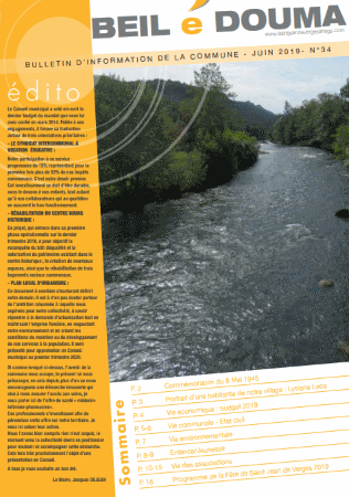 Depuis 1980, la Municipalité est attachée à faire prévaloir une certaine proximité vis-à-vis de ses habitants. C’est dans cette optique que le Beil é Douma (« aujourd’hui et demain ») est né. Ce journal, reflet de la vie locale de notre village a pour objectif de relater les principaux évènements communaux et les différentes actions menées par nos associations. A chaque parution biannuelle, les conseillers municipaux efefctuent sa distribution dans les boîtes aux lettres afin d’aller à la rencontre des saint-jean-de vergeoises et des saint-jean-de-vergeois.